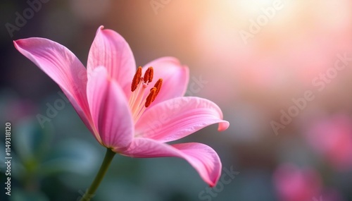 © Withun, Fototapeta premium Soft pink lily petals against a soft focus background, petals, misty, hazy