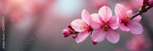 Obraz premium Soft pink petals unfolding from a delicate branch, pink blooms, tree in...