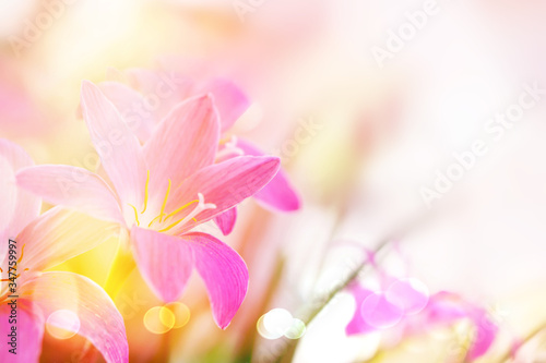 © doucefleur, Fototapeta premium soft pink rain lilly flower romance background