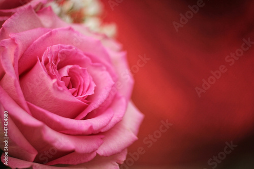 © LMPark Photos, Fototapeta premium Soft Pink Rose on Red Bokeh Background