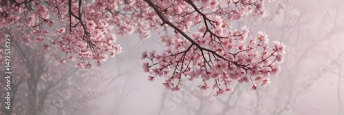 © Phennapha, Obraz premium Soft pink sakura petals descend against a hazy, spring backdrop , macro, seasonal, soft