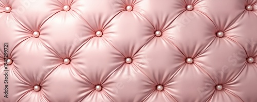 Fototapeta premium Soft pink tufted upholstery features pearl accents. This plush fabric creates...
