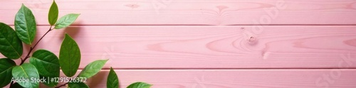 Fototapeta premium Soft pink wood background with a few scattered leaves, earthy tones, greenery, foliage