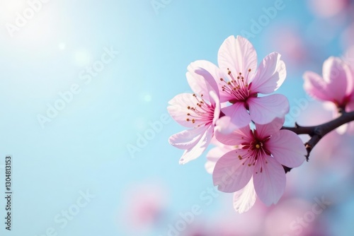 © Sayfar, Obraz premium Soft plum blossom against the pale blue horizon, soft, blue sky
