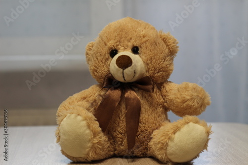 © Viktoriya, Obraz premium soft, plush, brown bear on a light background