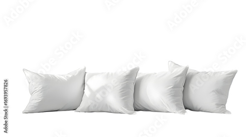 Obraz premium Soft plush white cotton pillows arranged on a plain minimalist background isolated on a transparent background