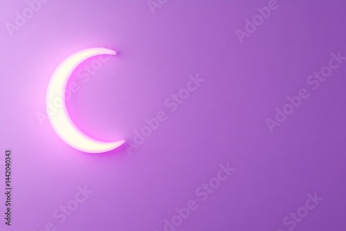 © Larisa, Obraz premium Soft purple backdrop with glowing crescent moon symbolizing spir
