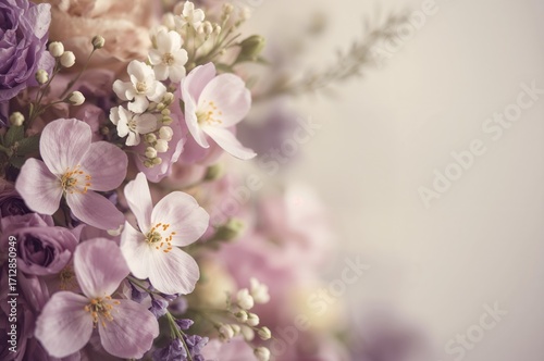 © The 2R Artificiality, Fototapeta premium Soft Purple Banner with Blossoming Margaret Flowers Against a Faded Backdrop