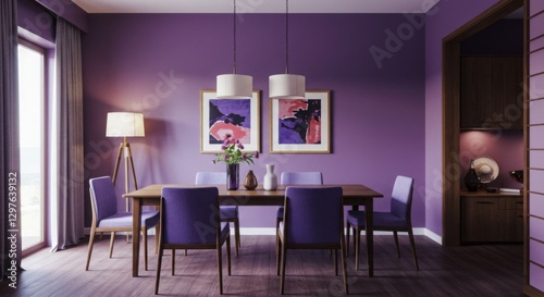 Fototapeta premium soft purple vivid Dining Room design Contemporary Ryokan decor