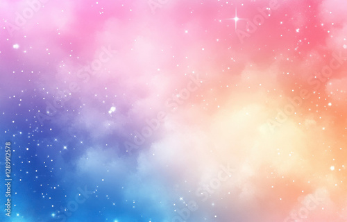 © MT Gallery, Obraz premium Soft rainbow gradient with dreamy blurred effect, featuring pastel colors and sparkling stars, creating whimsical and serene atmosphere