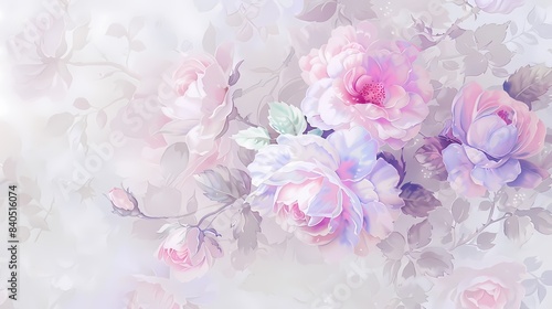 Fototapeta premium Soft rococo watercolor rose flowers texture pattern illustration poster background