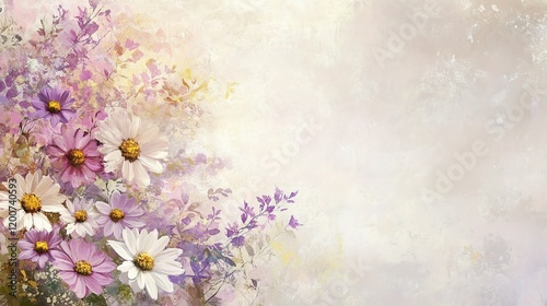 Fototapeta premium Soft Romantic Daisies on Light Background with Gentle Lines