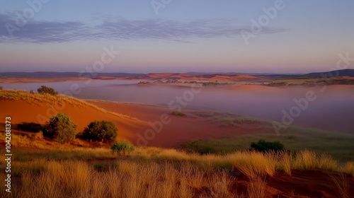 Obraz premium Soft sand dunes illuminated by mist in Australia