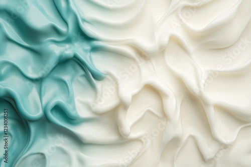 © Loopik, Obraz premium Soft Satin Fabric Texture in White and Teal Gradient
