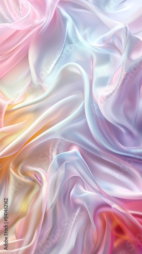 © Sergei, Obraz premium soft satin wave, light effect, holographic colors, texture with smooth flowing patterns, background design, fashion and digital art , shiny surface