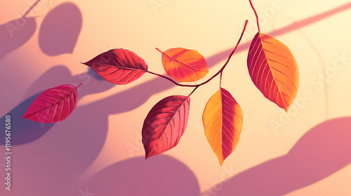 © Thiago, Fototapeta premium Soft shadows cast by leaves on a minimalist wall during afternoon light. Leafshadow. Illustration
