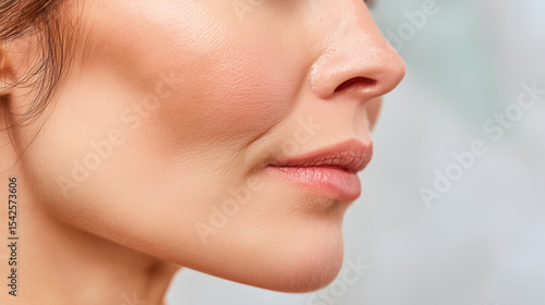 Fototapeta premium Soft skin close up of woman cheekbone and side nose with natural makeup and...