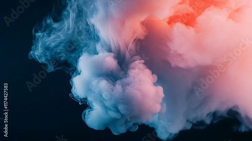 © Thirakun, Naklejka premium Soft smoke clouds forming an abstract design on a black minimalistic background