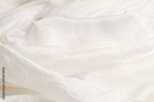 © Nikolay, Obraz premium Soft smooth white silk fabric background. Fabric texture.