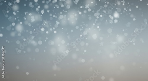 © Hard, Fototapeta premium Soft snowfall with delicate snowflakes and bokeh effect against a winter sky
