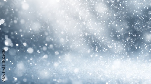 Fototapeta premium Soft snowy winter background with falling snow particles, cool white tones,...