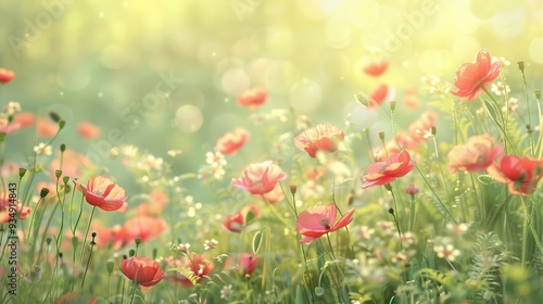 Fototapeta premium Soft Summer Meadow with Blooming Poppies.