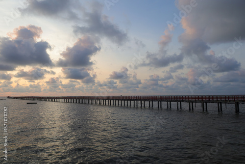 © arinchawit, Fototapeta premium Soft sunlight makes the Red Bridge even more beautiful.