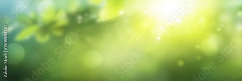 Obraz premium Soft sunlight shines through a blurred green background, creating a fresh,...