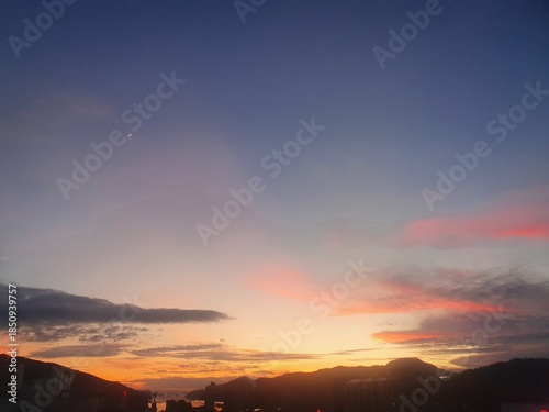 © Dongho, Fototapeta premium Soft Sunset Sky Over Mountain Silhouette at Dusk