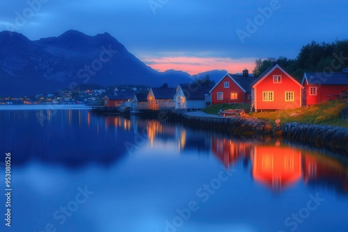 © Uliana, Fototapeta premium Soft twilight over a quiet town during Constitution Day in Norway.