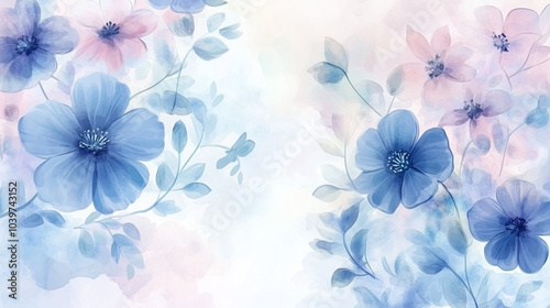 Obraz premium Soft watercolor floral background in pastel blue and pink hues