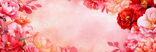 Obraz premium Soft, watercolor floral background with pink and red roses, perfect for...
