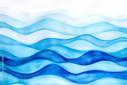 © Natalia, Naklejka premium Soft watercolor ocean waves in various shades of blue with white highlights for serene coastal atmosphere