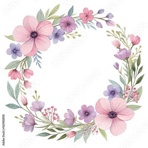 © IBRAHIM, Fototapeta premium soft watercolor wildflower wreath with light purple blooms