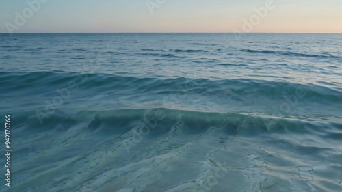 Obraz premium Soft waves rhythmically lap against the shoreline, reflecting a tranquil...