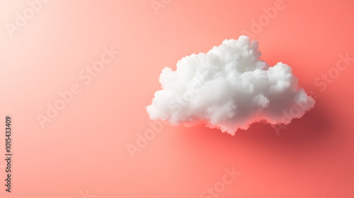 Naklejka premium soft white cloud floats against a serene pastel coral background, symbolizing...