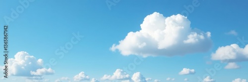 Obraz premium Soft white cloud floats amidst blue sky with few fluffy details, soft focus,...