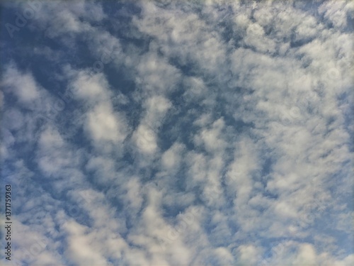 © Kasbar, Obraz premium Soft white clouds drifting across a blue sky