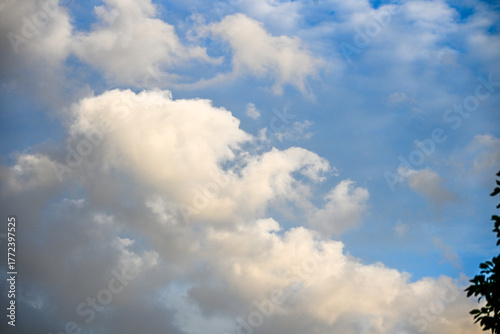 Fototapeta premium Soft white clouds drifting across a blue sky