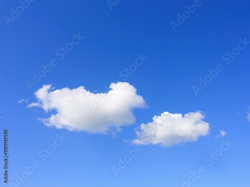 Fototapeta premium Soft white clouds float gently on a brilliant blue sky with fluffy texture...