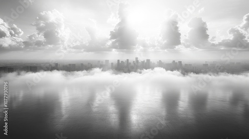 © Ummeya, Fototapeta premium Soft white clouds in an overcast sky with neutral tones, creating a tranquil backdrop