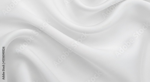 © Phung, Fototapeta premium Soft white fabric drapes elegantly showing subtle light reflections. AI Generated