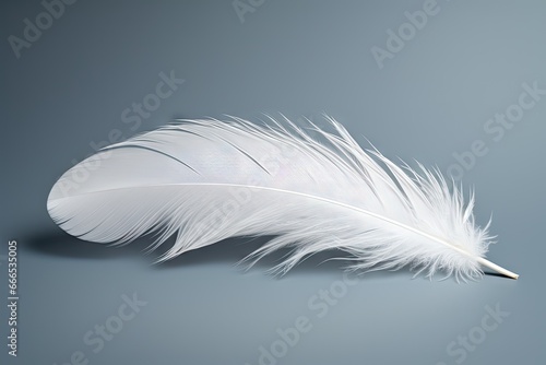 Obraz premium Soft white feather on grey background