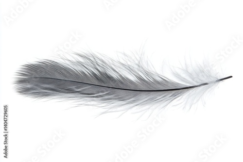 Obraz premium Soft white feather with subtle gray tips isolated on white background perfect...