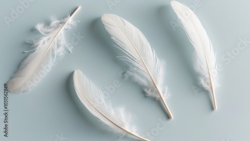 Obraz premium Soft White Feathers on Gentle Blue Background.