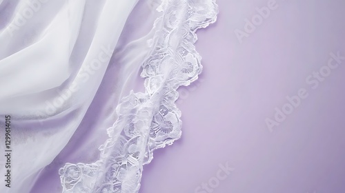 © Muhamad, Obraz premium Soft white lace and fabric on a pale purple background