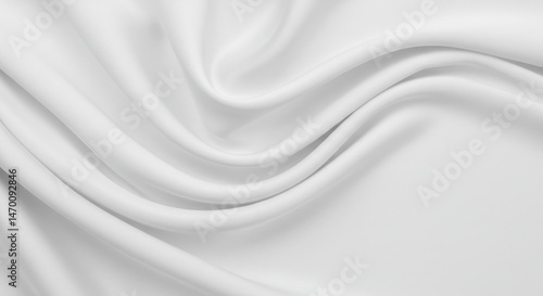 Fototapeta premium Soft White Silk Drape - Elegant white silk fabric, flowing curves, soft light, smooth texture, subtle shadows. Symbolizes purity, luxury, serenity, elegance, and fluidity