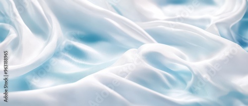Obraz premium Soft white silk fabric draped elegantly on a light blue background