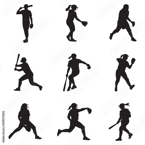 © firoz, Fototapeta premium softball Vector Black silhouettes. with white background