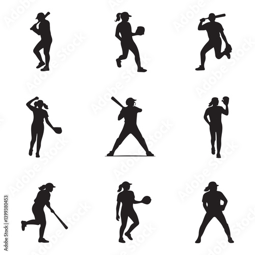 Obraz premium softball Vector Black silhouettes. with white background